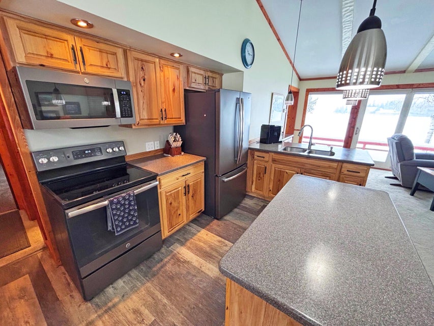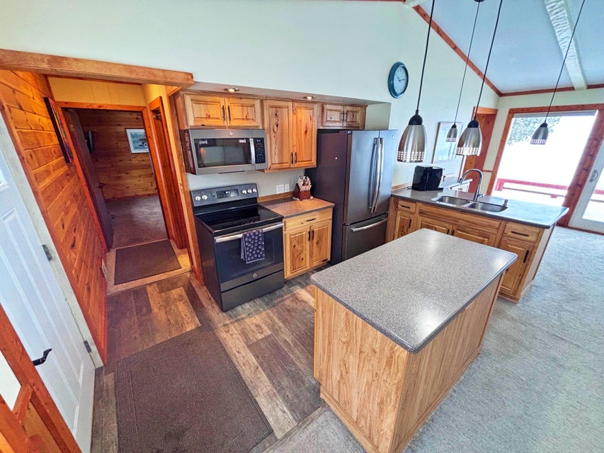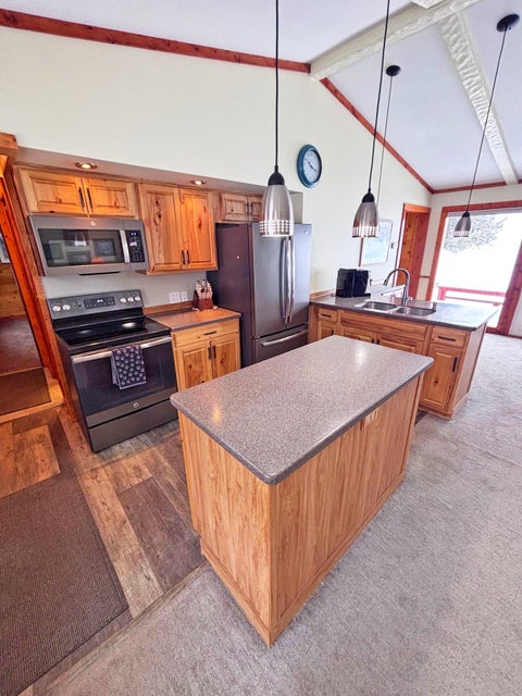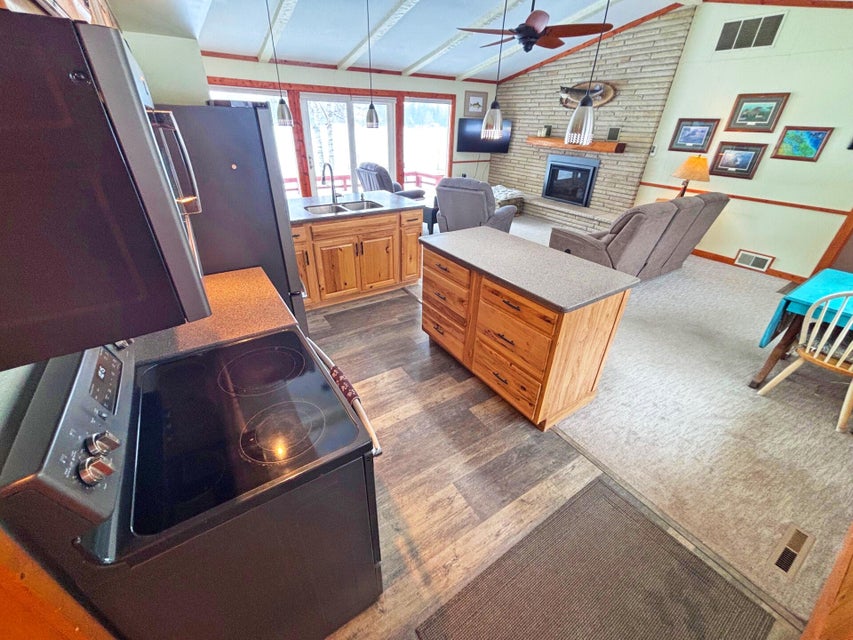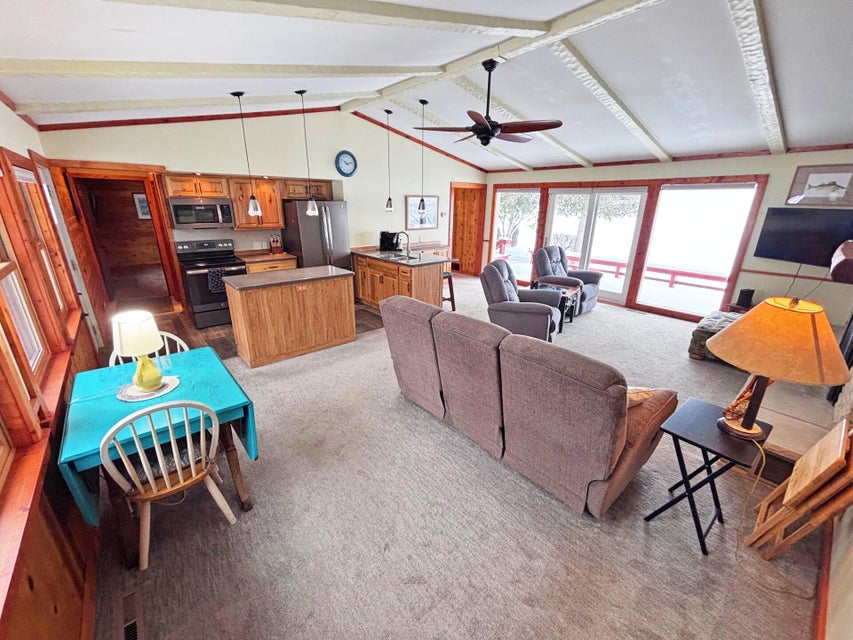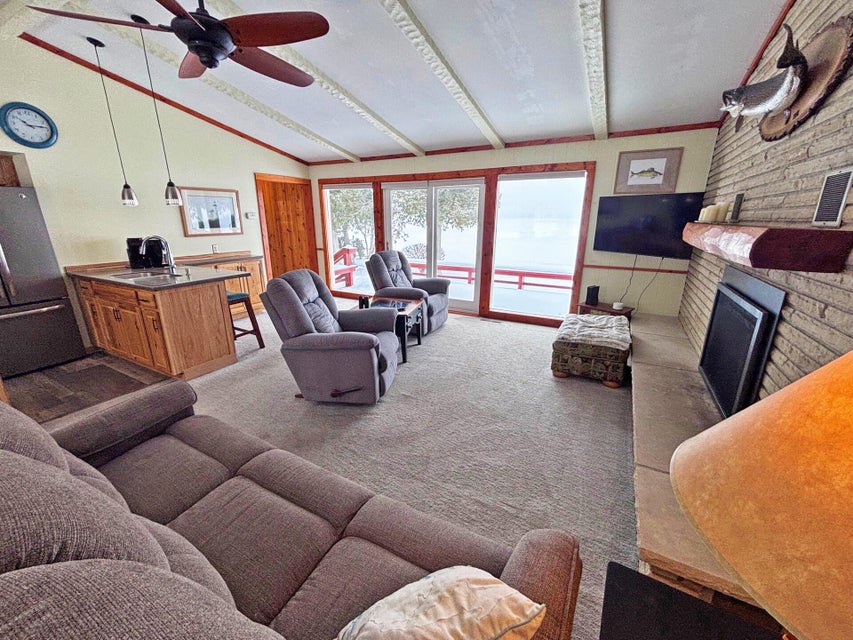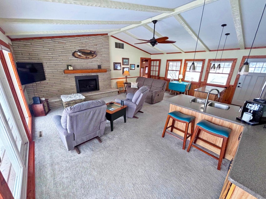 3 Bed, 2 Bath Home with 100' of pristine frontage on Grand Lake's Macomber's Island! Paved driveway, lakeside deck, privacy fence, shed, spacious floor plan, Livingroom with gas log fireplace, vaulted ceilings, and lakeside wall of windows. Updated Kitchen with new appliances, split floor plan, clean updated bathrooms, previous 1 car garage has been converted into a 3rd bedroom. main floor laundry area, and mechanical room. New windows, doors, carpet, and paint. New A/C unit, water heater, and water softener. New roof in 2022. New Septic in 2021. This incredible turn-key home has it all and is ready to enjoy! Don't let this incredible home pass you by!