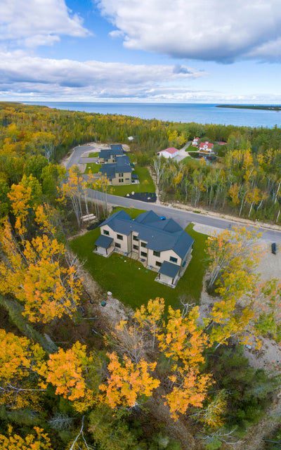Upscale condominium duplex units with 2-3 Beds, 2.5 Baths, attached 2-car garage, open floor plan, functional main floor living space with living room, kitchen, 2 baths, foyer, and laundry/mud room all on the main level. Upstairs features a full bath, and either 2 bedrooms, or 1 bedroom and loft. Outside, you have a covered front porch, covered rear patio, and landscaped yard. HOA fees are $235 per month and cover snow removal from driveways and walkways, lawn maintenance, and spring & fall clean-up. Enjoy main floor living and maintenance free exteriors in a prime location near Grand Lake, Lake Esau, North Bay, Presque Isle Harbor, and two historic lighthouses!