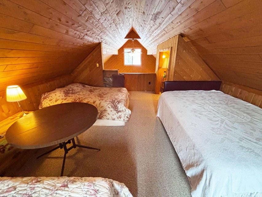 Charming 3 Bed, 1 Bath home on a private wooded double lot, with paved drive, detached heated 2 car garage with 3/4 bath, lean to, and living space/bedroom above. The home features a large deck, 4 season sun-room, spacious open floor plan with vaulted ceiling, perfect for entertaining guests, cozy living room/kitchen combo with wood burning stove, 2 main floor bedrooms, full bath, laundry room and spacious upstairs loft. All of this in a prime location next door to the clubhouse, with Grand Lake, Lake Esau, Lake Huron, Presque Isle Harbor, and 2 historic lighthouses just minutes away! Don't let this one slip past you! Call today!