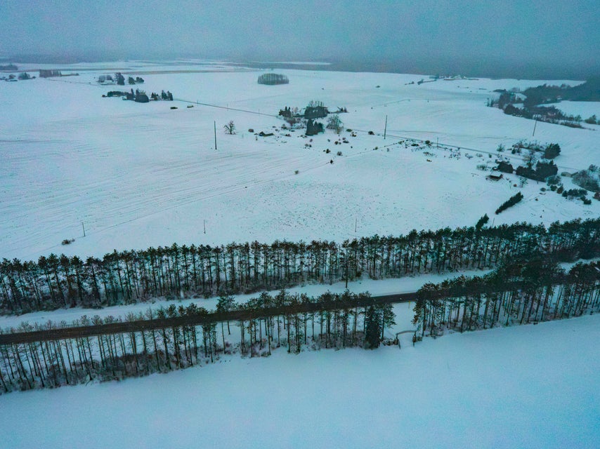 Pine trees along road for privacy |
